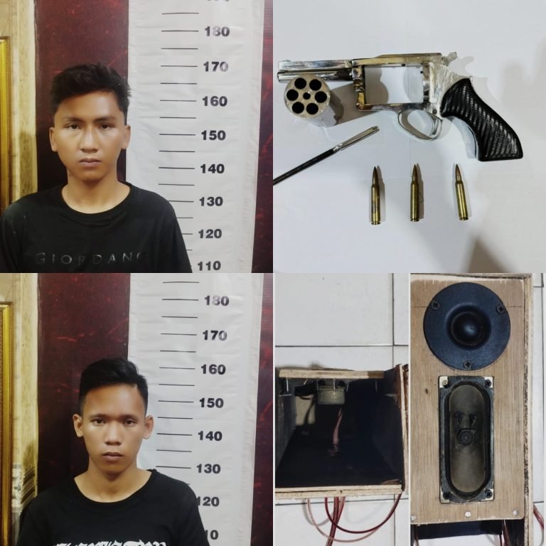 Tanpa menunggu lama, petugas segera menuju kontrakan yang dimaksud dan melakukan penggeledahan. Hasilnya, petugas menemukan 1 (satu) pucuk senjata api rakitan jenis revolver berikut 3 (tiga) butir amunisi aktif yang disembunyikan di dalam kotak salon speaker. Barang bukti tersebut kemudian diamankan bersama kedua pelaku untuk selanjutnya dibawa ke Mapolres Metro guna menjalani pemeriksaan lebih lanjut.